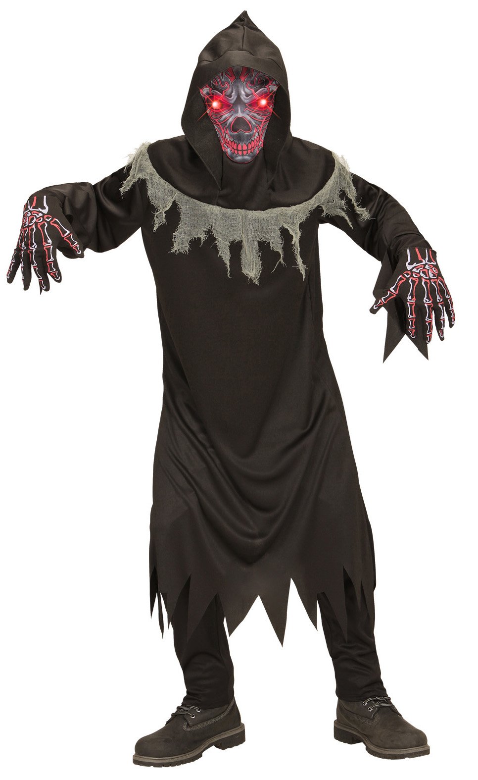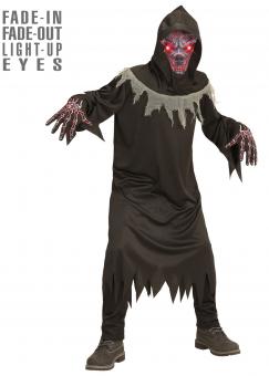 Robe, Handschuhe, Maske mit Kapuze und leuchtenden Augen