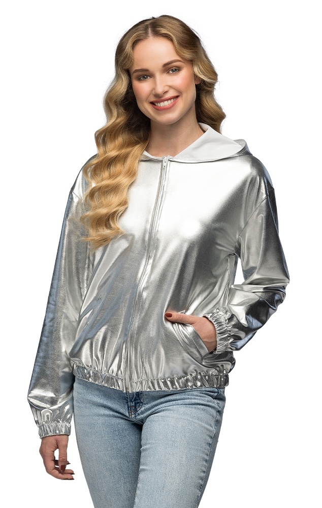 Diese silberne Metallic-Jacke bringt Glanz in Ihr Outfit! Perfekt für trendige Festivals, glamouröse Nächte in der Stadt oder als Hingucker auf einer Bad-Taste-Mottoparty. Kombinieren Sie sie mit auffälligen Leggings und auffälligem Schmuck, um einen unvergesslichen Look zu kreieren.
