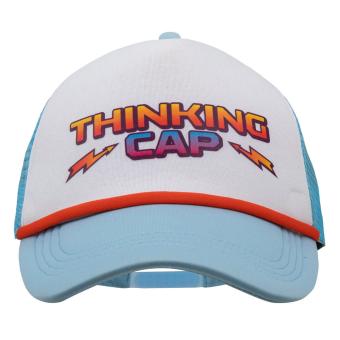 Diese Trucker-Mütze besticht durch eine charmante Farbpalette aus hellblauen und weißen Akzenten und verleiht der Kappe einen Hauch von Retro-Charme. Werden Sie Teil von Dustins treuer Fangemeinde und setzen Sie ein mutiges Statement mit Dustins Thinking Cap.