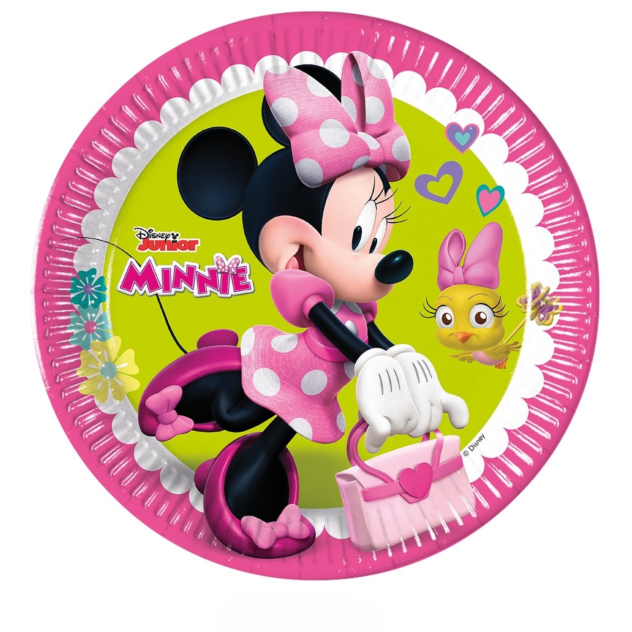 "Verschönere den Kindergeburtstag deines kleinen Lieblings mit unseren entzückenden Partytellern im Minnie Mouse Design! Diese farbenfrohen Teller bringen den Charme von Mickey, Minnie, Donald Duck, Daisy und Goofy direkt auf den Tisch. Feiere eine unvergessliche Party im Wunderhaus von Mickey Mouse