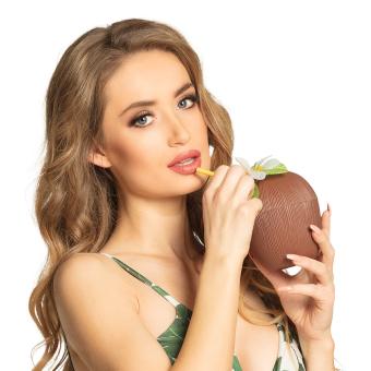 Kokosnuss Becher mit Trinkhalm und Hibiskus-Blüte