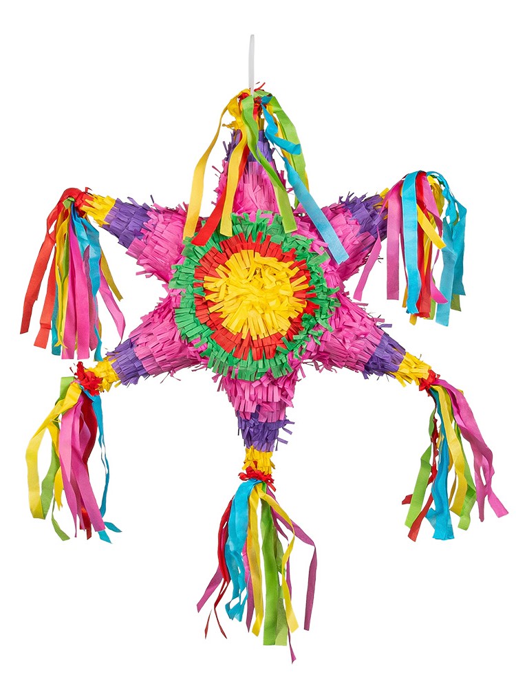 Das Piñata-Spiel stammt ursprünglich aus Mexiko, Die bunten Figuren aus Papier und Karton, werden mit Süssigkeiten oder kleinen Geschenken gefüllt. Bei Schlag-Piñatas versuchen die Teilnehmer, mit verbundenen Augen die Piñata mit einem Stock zu zerschlagen, damit die Leckereien herunterfallen.