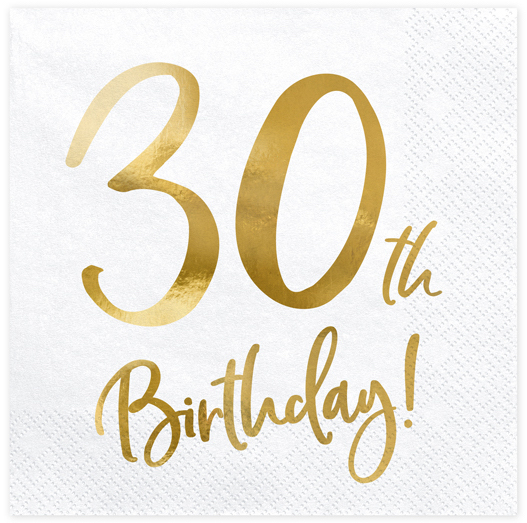 20 Servietten mit goldener Schrift zum 30. Geburtstag.