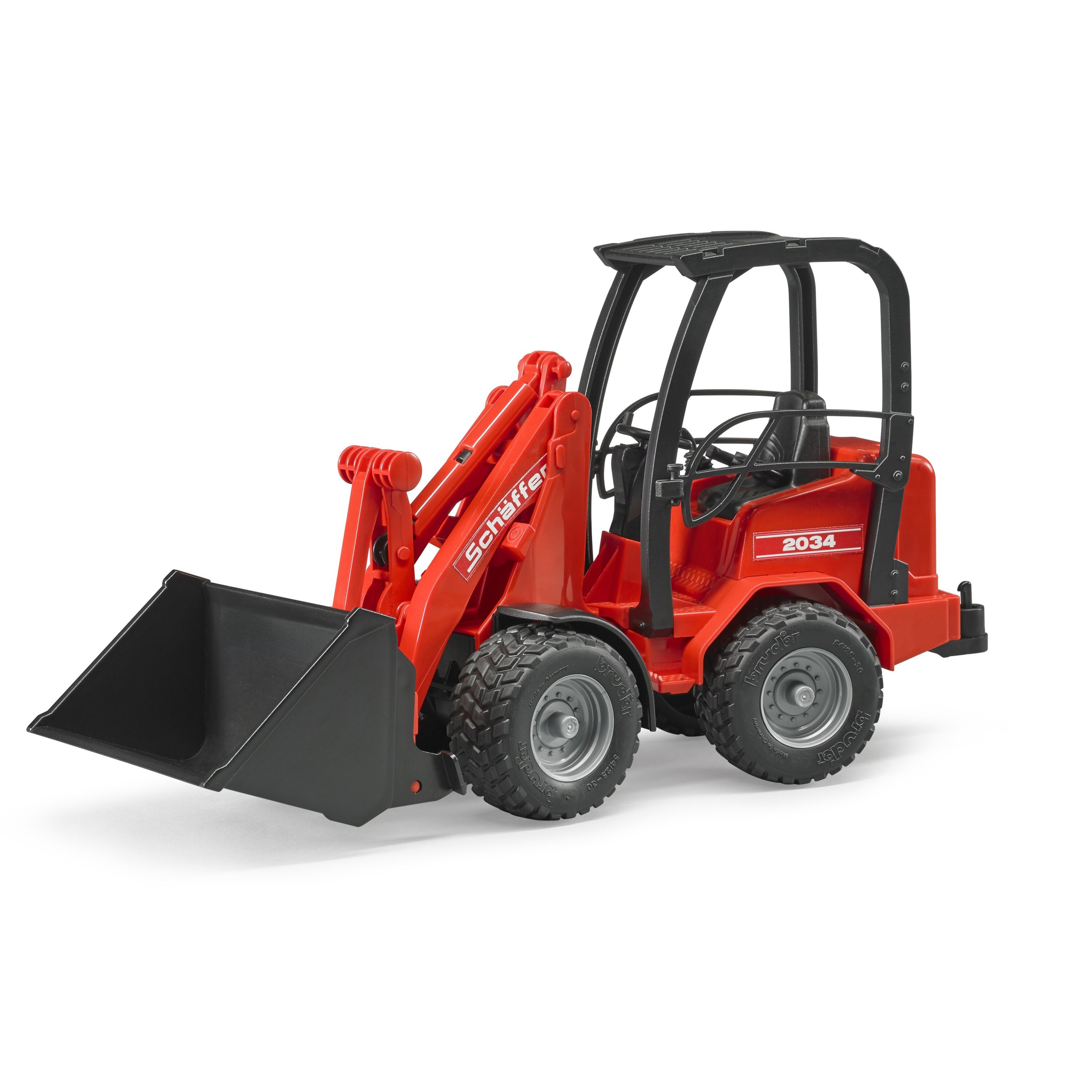 Seit über 50 Jahren entwickelt Schäffer Radlader für Landwirtschaft, sowie Garten und Landschaftsbau. Die 2000er Kompaktklasse gehört bei Schäffer zu den erfolgreichsten Baureihen überhaupt. Höchstleistungen auf engstem Raum zu bieten, das ist die Prämisse für diesen Lader. Dieses wichtige und überzeugend vielseitige Fahrzeug für jede erfolgreiche Landwirtschaft ist nun neu im Maßstab 1:16 für die Bruder Kollektion hinzugekommen. Für maximale Wendigkeit besitzt das Fahrzeug, wie auch das Original, eine funktionierende Knicklenkung und auch der Ladearm und Schaufel funktionieren wie beim großen Vorbild. Für die Sicherheit der bworld Figur, welche bequem in den Fahrersitz passt, ist ein massiver Überrollbügel vorhanden. Für die Erweiterung des Spielerlebnisses kann das Zubehörset Artikel-Nr. 02318 (nicht im Lieferumfang enthalten) an den Lader montiert werden.