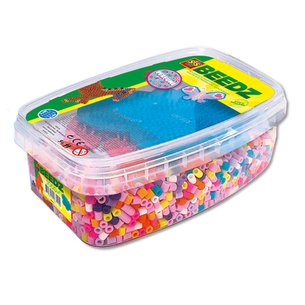 Wiederverschliessbare Box mit 7000 bunten Bügelperlen von SES. Die 4-5 mm grossen, zylinderförmigen Bügelperlen werden zuerst auf Stiftplatten gesteckt und verschmelzen beim Bügeln zu Bildern. Dieses Lernspiel fördert insbesondere die Feinmotorik, Konzentration und Kreativität des Kindes, ebenso wird die Farb- und Formenlehre geschult. Inhalt: 7000 bunte Bügelperlen in kräftigen Grundfarben. Für Kinder ab 5 Jahren.