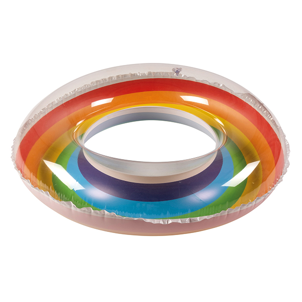 Schwimmring Rainbow, aufgeblasen ca. 65cm, unaufgeblasen ca. 70cm, Oberseite transparent, Unterseite innen mit Regenbogenfarben.