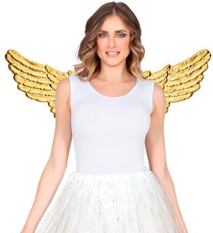 PVC angel wings in gold, size approx. 88 × 33 cm – perfect for adults and older children who want to add a shiny, festive touch to their angel costume.