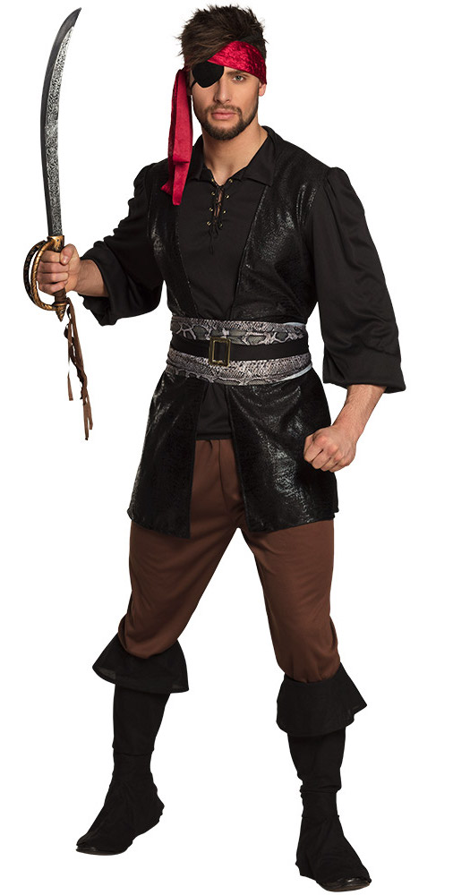 Shirt, Hosen, Kopfband, Augenklappe, Schuhüberzüge.
