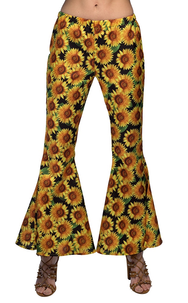Step back into the vibrant 60s and 70s! These stylish flared pants with sunflower print are the perfect foundation for your Flower Power outfit. Stretchy and comfortable, they provide the ultimate hippie look for Carnival and themed parties.