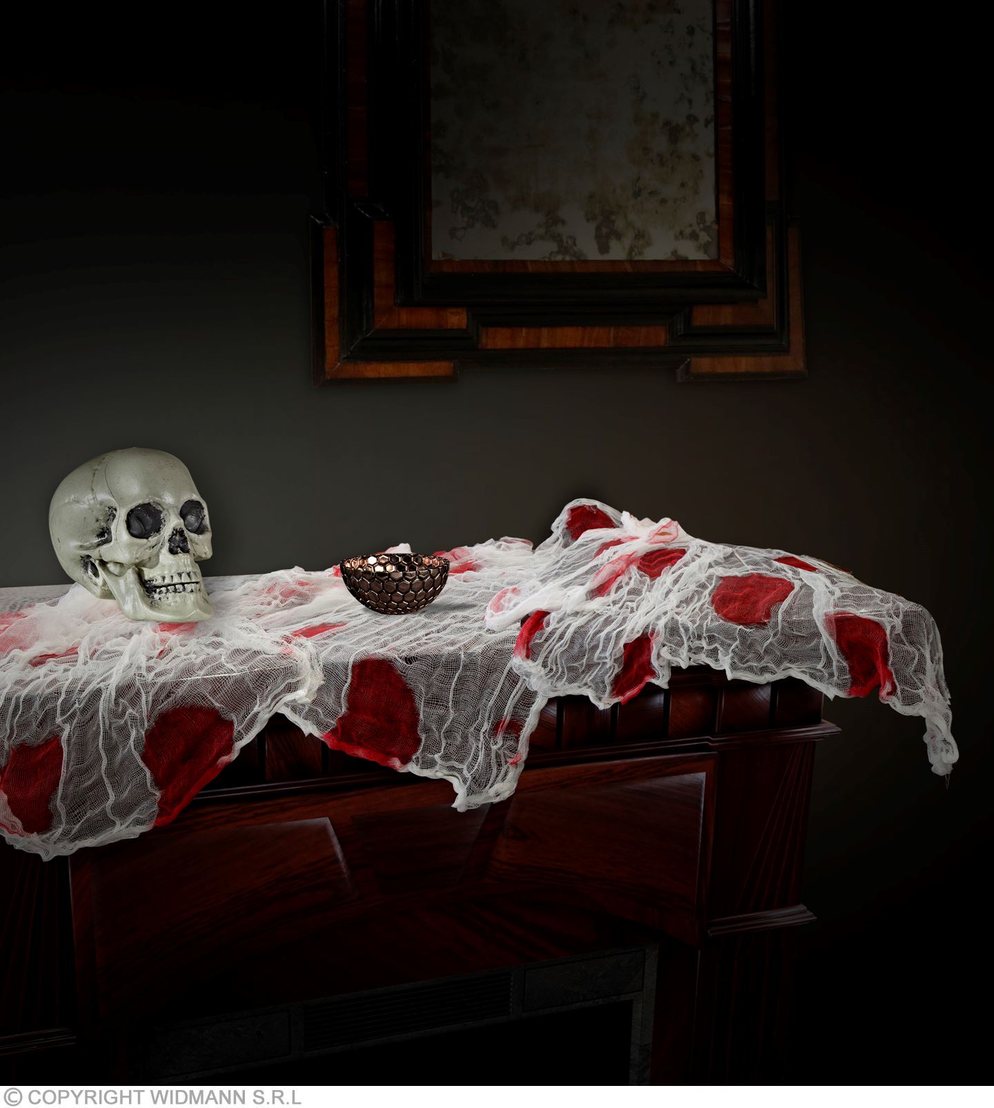 White rag with bloody stains, perfect for a spooky tablecloth for Halloween or a horror and suspense party. Of course, you can also use this piece of fabric to decorate other items.