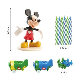 Mickey Mouse Tortendeko Set mit Figur, 10 Kerzen mit Halter und zwei kleinen Flugzeugen.