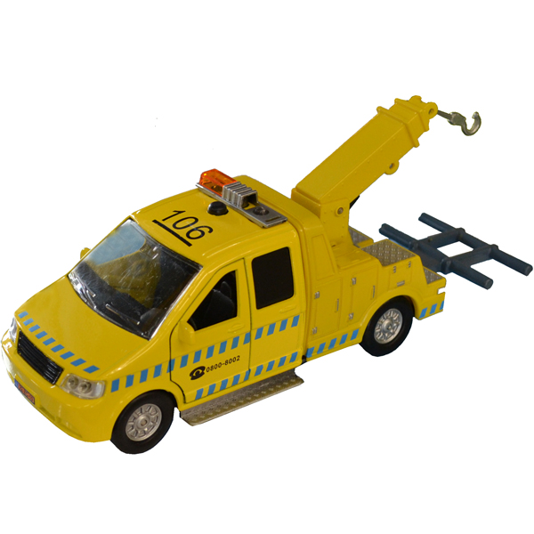 Eine Panne? Der Abschleppwagen mit Pull-Back Funktion bringt die defekten Fahrzeuge in die Garage zum flicken. Mit Blinklicht und Sound, Die Türen können geöffnet werden. Die Verpackung hat eine *Try me* Funktion.