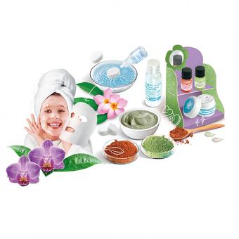 Gesichtsmasken sebst machen. Ein originelles und unterhaltsames wissenschaftliches Set zur Erstellung natürlicher und feiner Schönheitsmasken. Das Set enthält alle Zutaten für die Herstellung von echten Schönheitsmasken, einschließlich grünem Ton, vulkanischem Ton und vielen frischen und wohlriechenden Düften. Das Spiel enthält auch angereicherte Stoffmasken für eine beruhigende, erfrischende und aufhellende Behandlung. Das reich bebilderte Handbuch führt die Mädchen Schritt für Schritt in die Entwicklung angenehmer Schönheitsbehandlungen für ihr Gesicht ein.