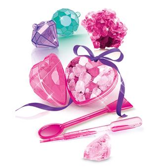 Mit diesem einzigartigen Forschungsset können Kinder fantastische, wunderschöne und farbige Juwelen und Kristalle kreieren. Die werden dann in edle Edelstein- und Diamantfassungen eingeschlossen.