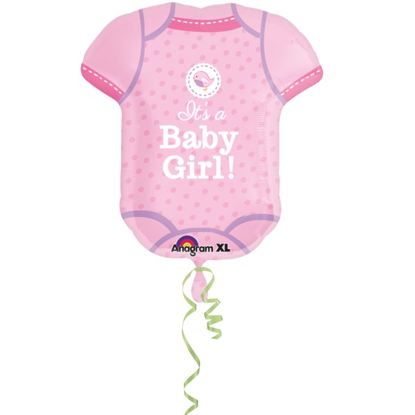 Folienballon als Body It's a Girl. Ein strapazierfähiger Folienballon mit einem selbstschliessenden Automatikventil. Der Ballon hat ein Patentventil eingebaut und kann mehrfach aufgeblasen werden.