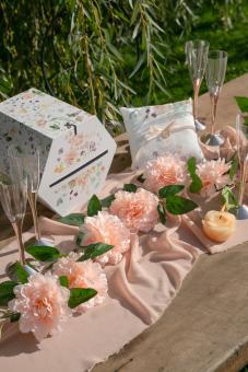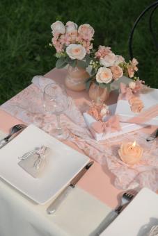 Ce chemin de table en fin tissu crépon apporte une élégance naturelle à chaque table de fête. Sa douce teinte rose crée une ambiance fraîche et harmonieuse, parfaite pour les décorations de saison ou les événements festifs.