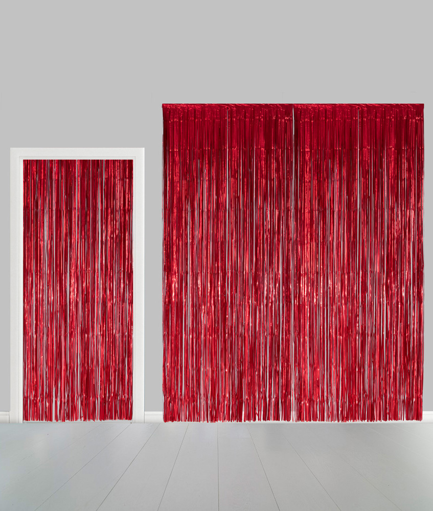 Ce rouge rideau métallique de fête est idéal comme décoration d'accueil pour la zone de la fête. Pour les grandes portes ou pour rendre la décoration encore plus efficace, vous pouvez accrocher deux rideaux côte à côte.