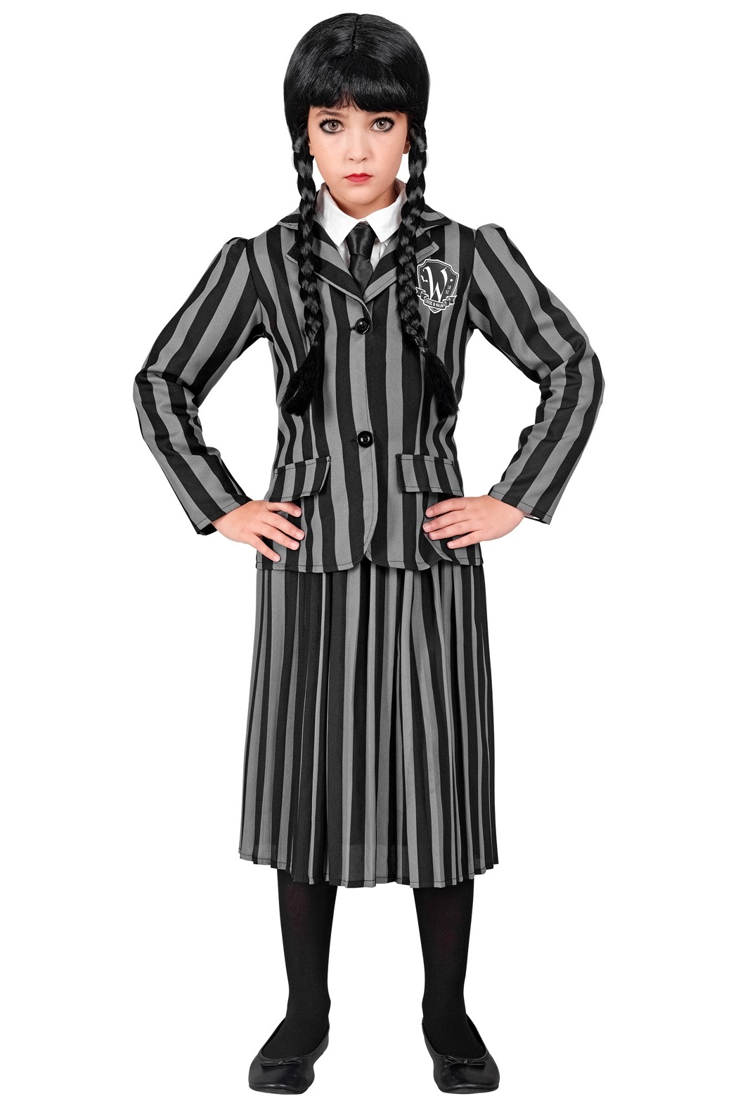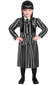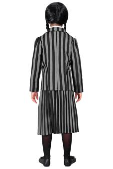 Un déguisement mystérieux inspiré du look iconique de Wednesday. Une tenue idéale pour Halloween, la Fasnacht ou une fête à thème, apportant une touche élégante et sombre tout en permettant aux enfants d’incarner un autre rôle.