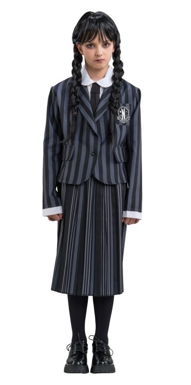 Déguisement d'uniforme scolaire de Wednesday avec veste, plastron avec cravate et jupe